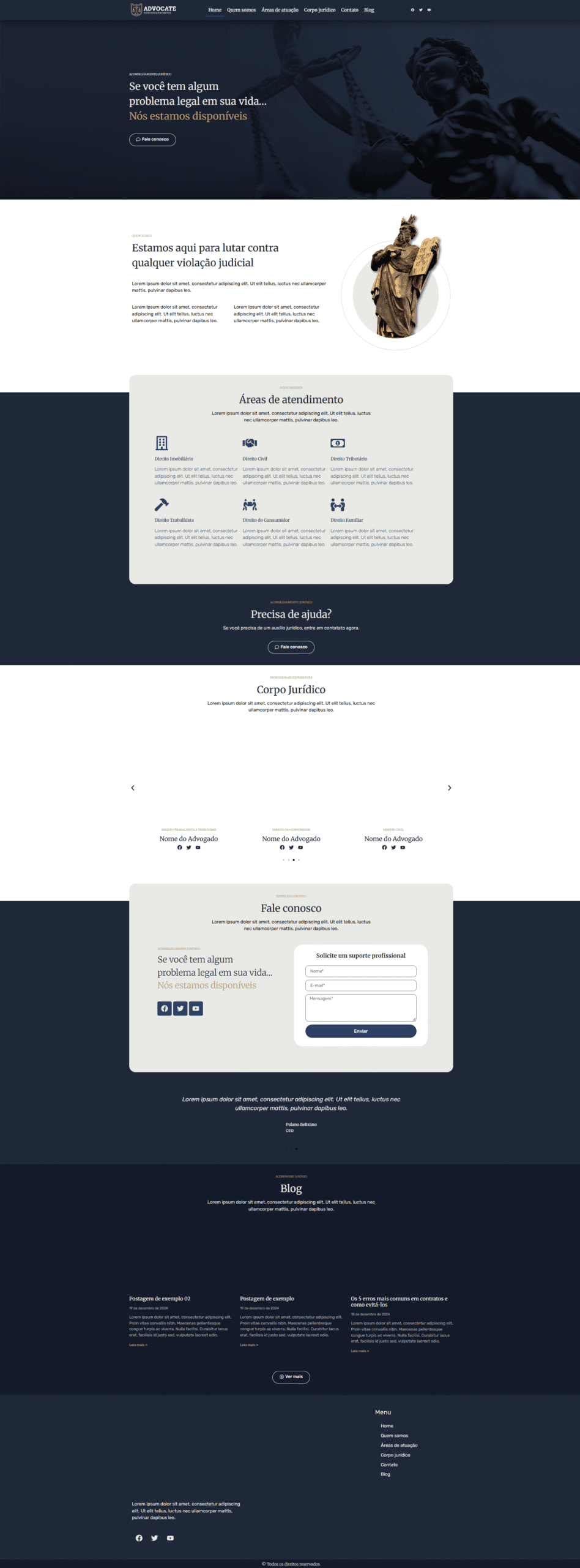 The Advocate Website is a clean, professional web platform designed for legal professionals to present their services, share expertise, and connect with potential clients.